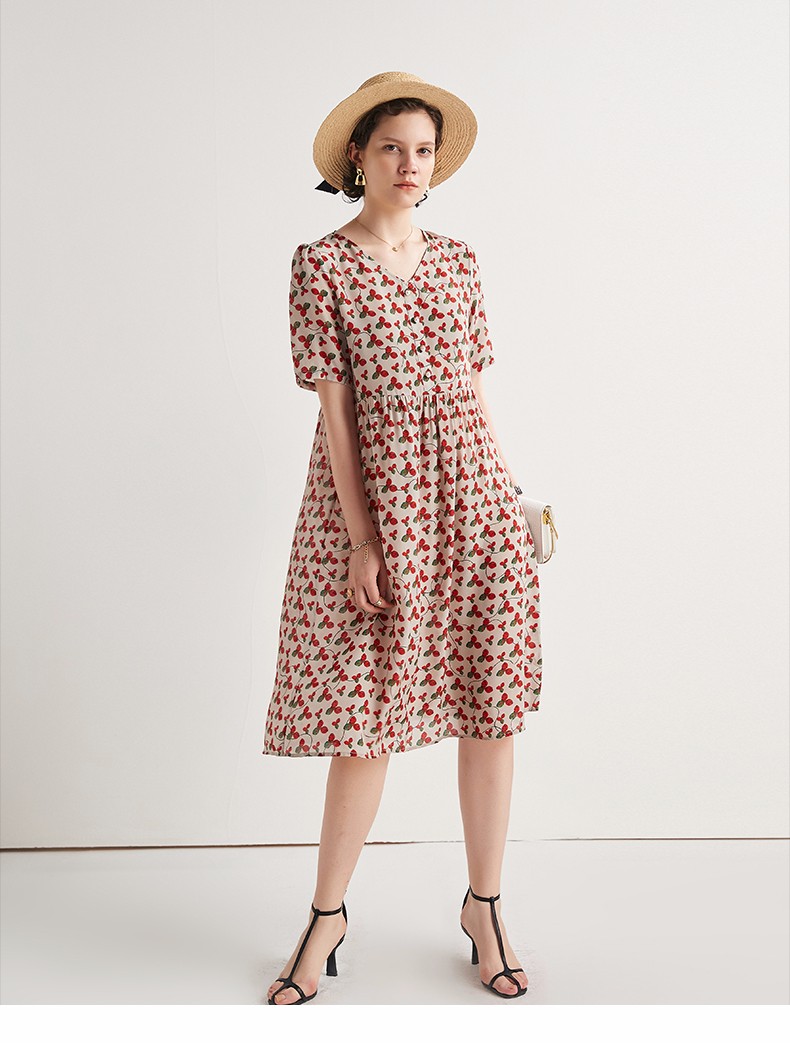 | 商品名称 | パロマズワワンピス随伴性清新さくらんぼプリント桑蚕糸夏気質ローリングカート新着商品ファッションゆったり花色紅M |
