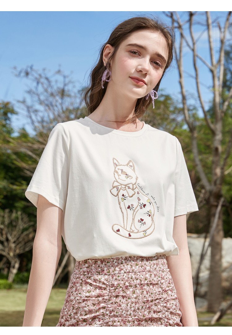 | 商品名称 | 三彩2021春新作商品黒科学技術三防Tシャツー女性ゆとり猫刺繍半袖上着カジュアル減齢本白前売6.16 165/88 A/L |
