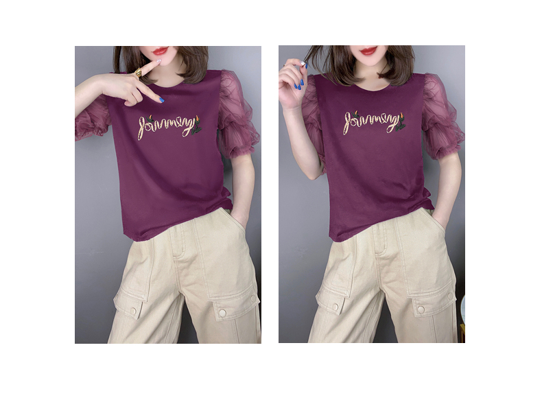 | 商品名称 | 南極人Tシャツ女性2021夏新着商品ファッションオールマイティー網糸半透袖刺繍プリントデザイン感小衆半袖女性NRE 45-3533-紫色M推奨90-100斤 |