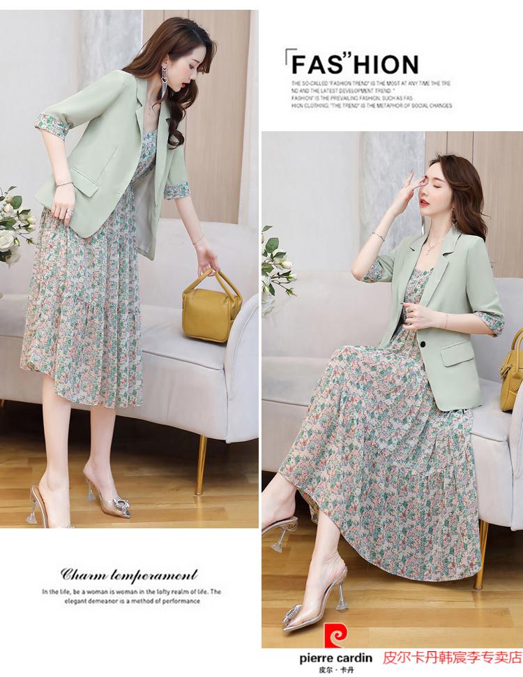 宏资琦雪纺ワンピス女性は21年夏に新商品の女装をしています。韓国版気質半袖上着は腰が高くて痩せています。中には長いカジュアルセトスカートのファッションが減齢しています。