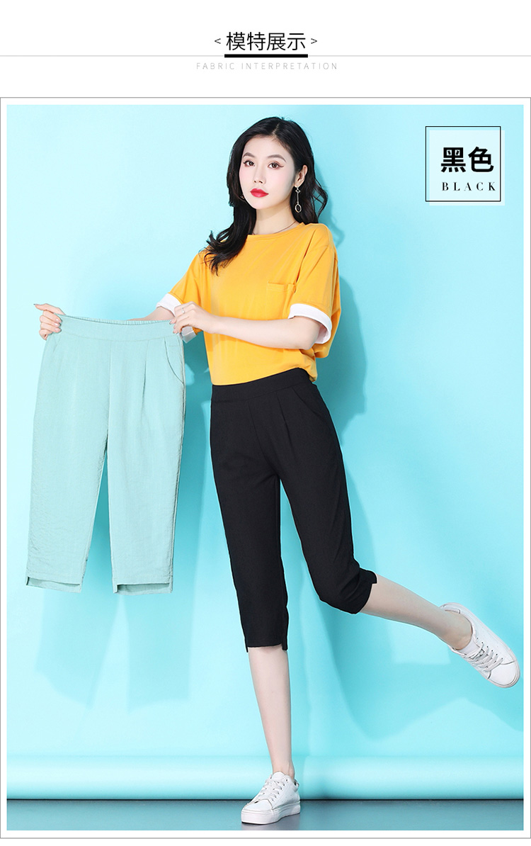 妹また2021ファッション春夏新商品の韓国版は明らかにやせています。ハーロンのズボンの女性は細いです。コルセットがゆるいです。九分ズボンの大きいサイズのカジュアルズボン2009黒(9分)XL(1151-1125斤ぐらいを提案します。)