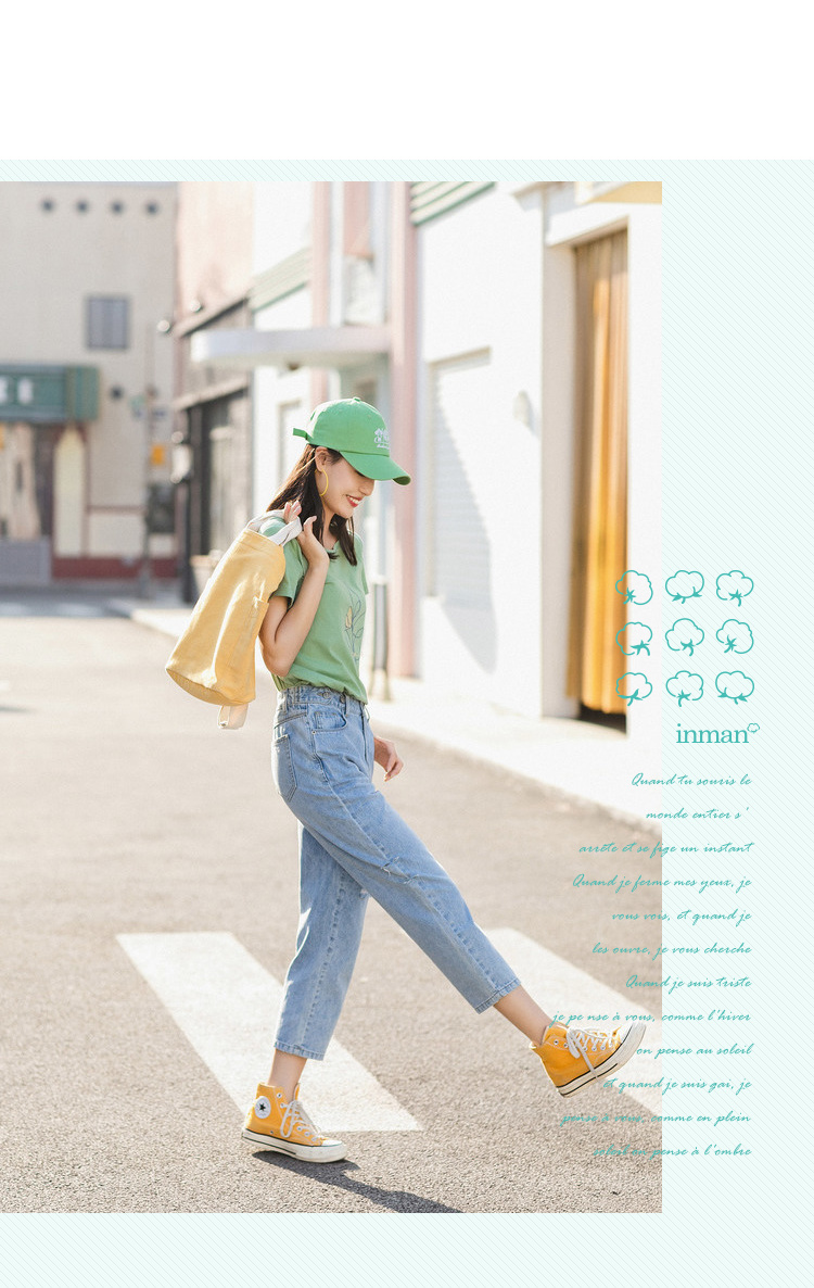 ラインマン(INMAN)夏の服は小さくて清新な丸首の純綿の刺繍のファッションが現れてやせています。半袖Tシャガール1802192メートルのアンズ色XL