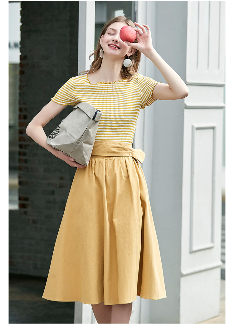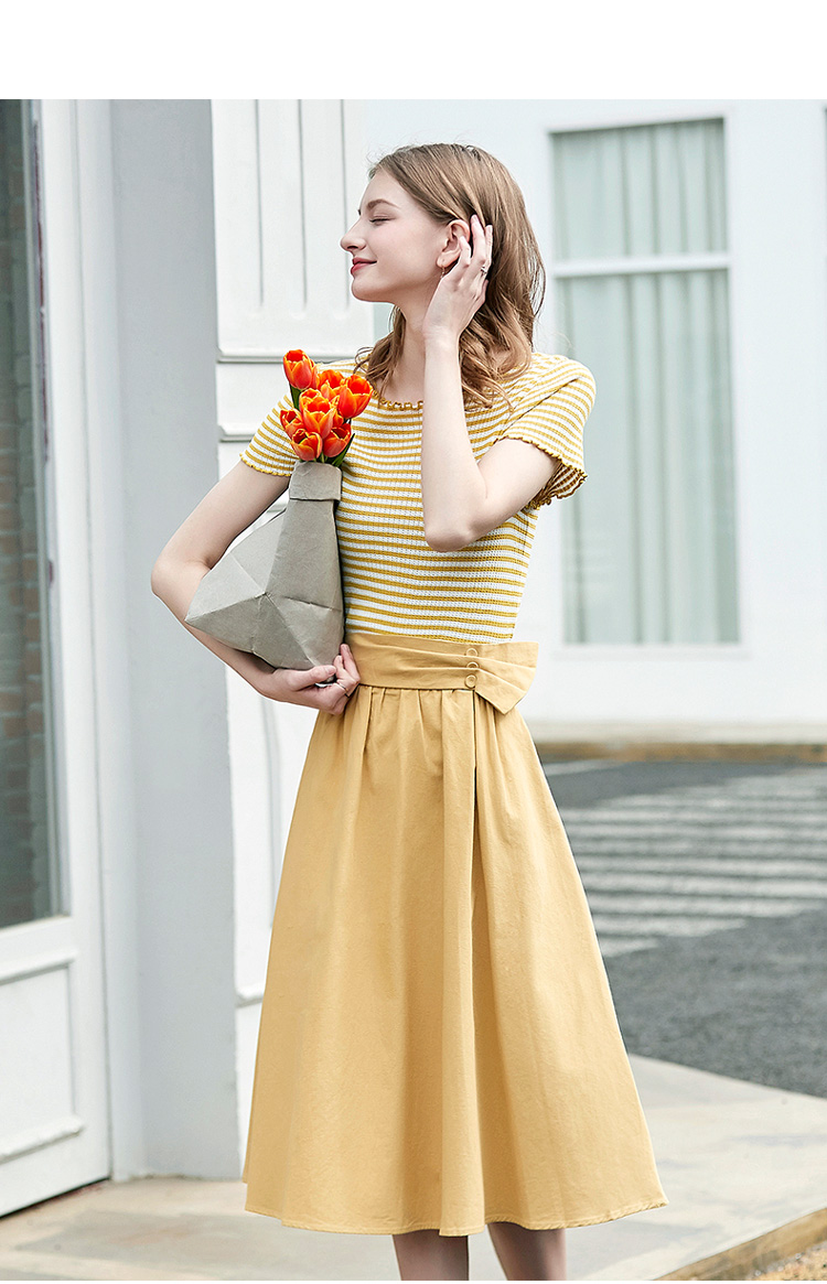【顔域IOP 934 O】顔域の中の長柄のa字の半身のスカート春色の女性の純色のウエストを大きく広げてスカートの黄色L/40を配置する【相場見積価格の評価】-