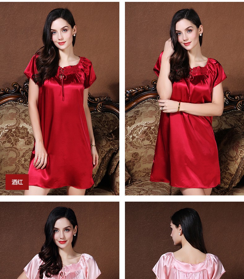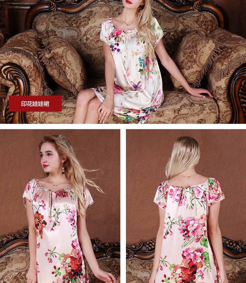 | 商品の名称 | 1メートルの画紗のシミュレーションの糸のパジャマの女性の夏の氷の糸の眠るスカートの女史の半袖のセクシーな連体の絹の桑の糸の家庭服のシャンパンの平均サイズ |