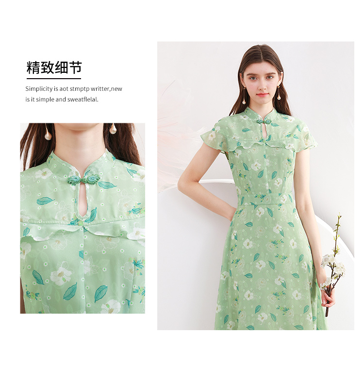 | 商品名称 | 風がないチャイナドレス改良版シフォンプリントワンピス女性2021年夏に新商品の雰囲気を持っています。ウエストが細く見えるスカート緑色XXL |