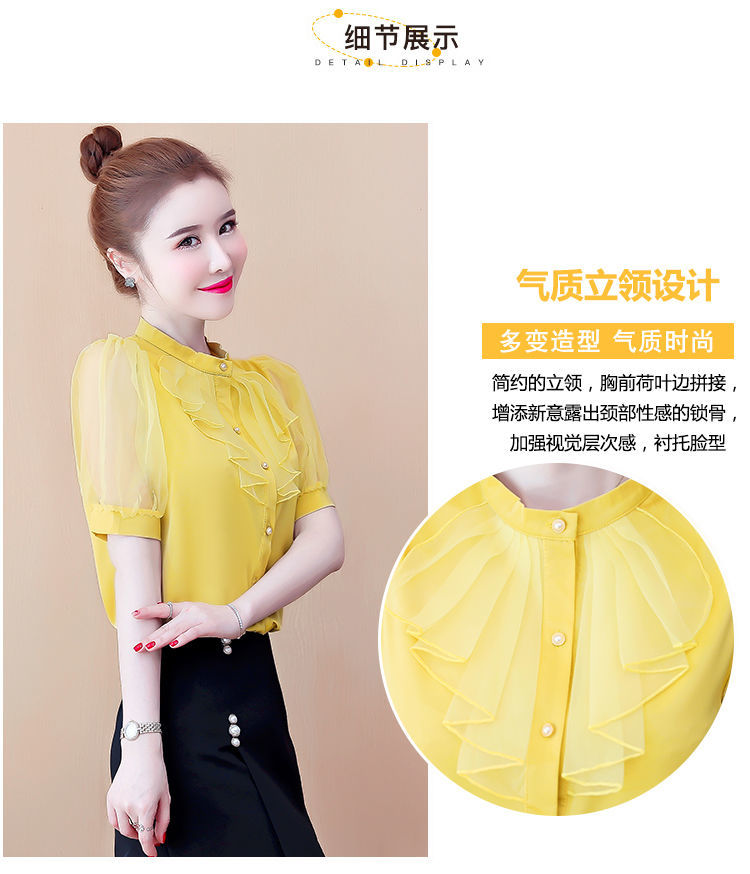 | 商品名称 | 央紫【品質婦人服】フランス風のハスの葉の辺のシフォンシャツ2021夏に新商品の洋風ロマンチックな紗ネットで小さいシャツの半袖の女性の上着のピンクをつなぎ合わせます。 |