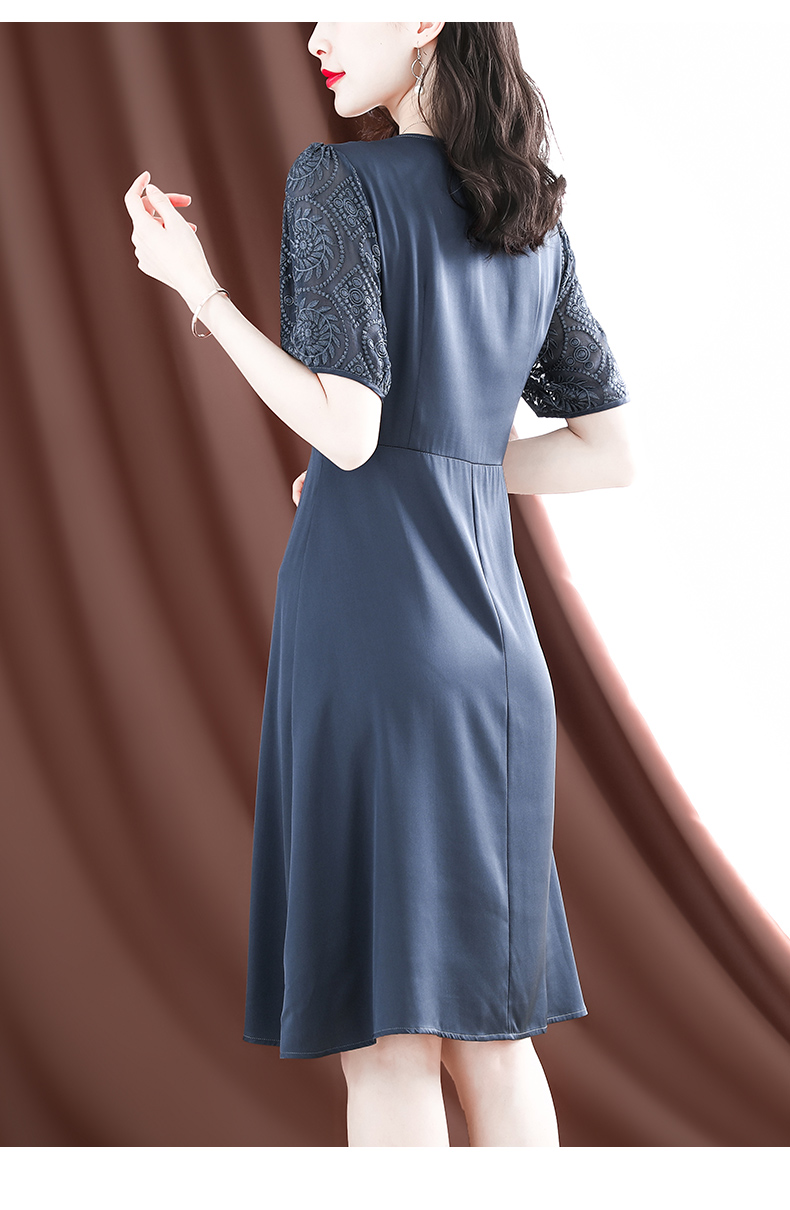 | 商品名称 | Davis Koko上品ブランド重ポンド刺繍真糸wanピス婦人服2021夏新着商品V襟半袖収腰顕痩せさんシルク中ローリングカラーM |