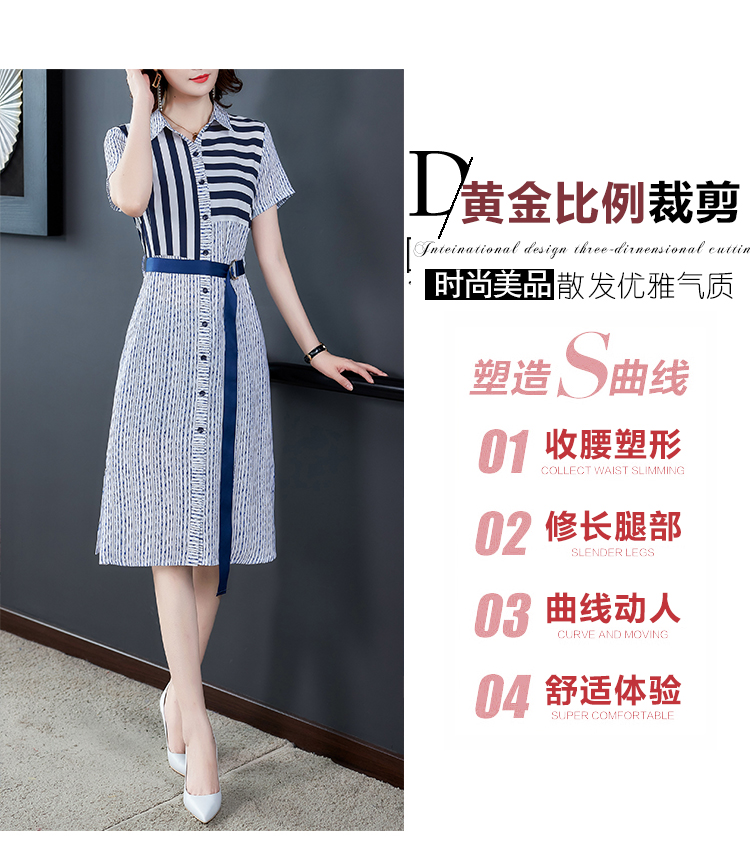 | 商品名称 | CUF香港潮牌ストライプワンピス半袖婦人服夏新着商品洋気減齢中長款ファッション收腰顕痩身修身A字シャツ画像色M |