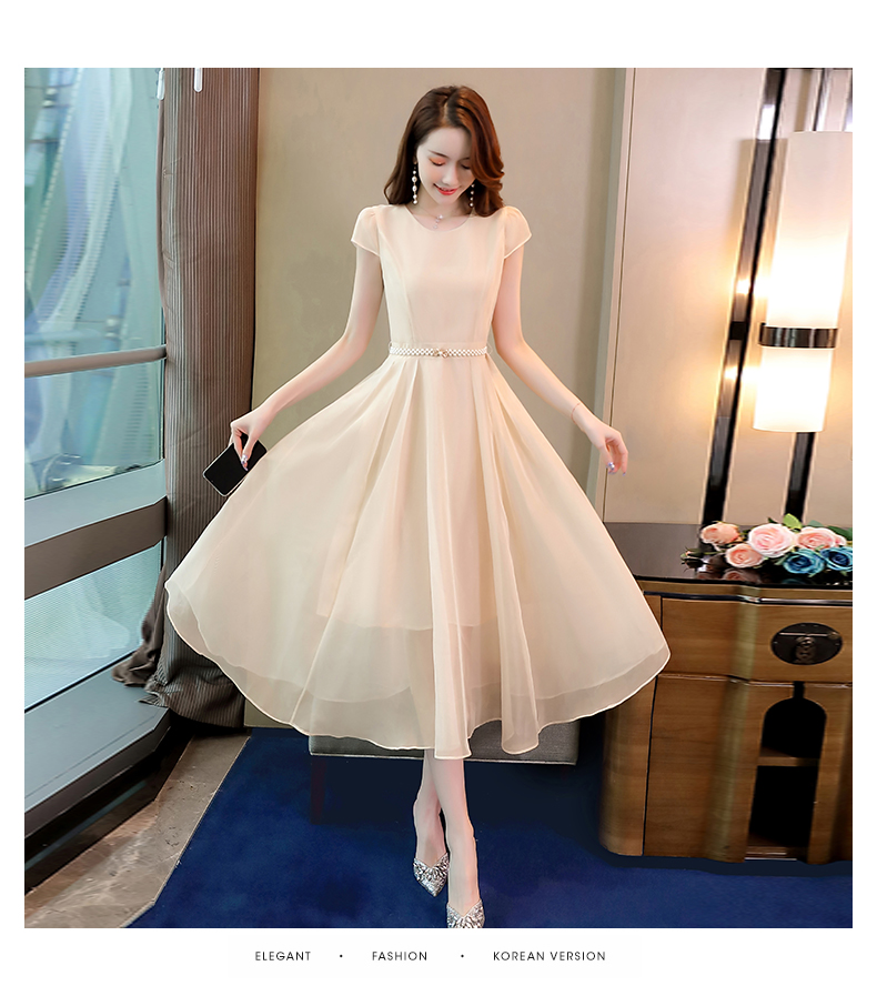 | 商品名称 | LIAOKOU軽豪华ブランドの妇人服上品ワンピス夏过膝頭ローリングカート2020年新着商品カバーお腹顕痩せa字スカート名媛気质やさしい风雪纺のスカート紺色L |