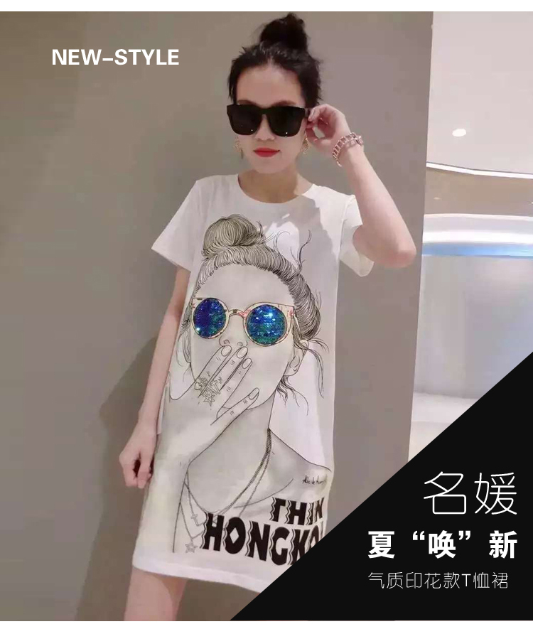 ジャックが香港のファッションカードを探しています。2021年夏の女性服の新商品です。韓国版ファッションの半袖がゆったりしています。中の長い綿の質ワンピス。