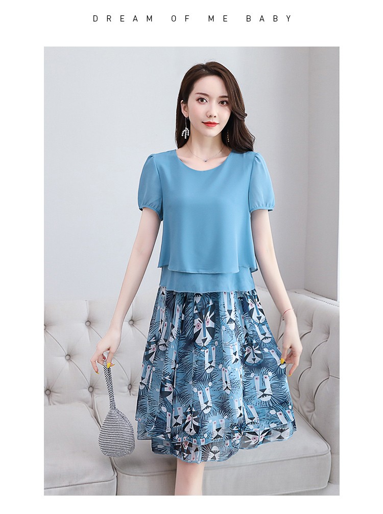 | 商品名称 | 戈朵妍シフォンワンピス21年夏新商品韓国版プリントの大きいサイズの婦人服中年のお母さんはゆったりしたカバを詰めます。腹が見えます。中には長いスタイルの洋服があります。ビーチスカートは青いです。(90-105斤を推奨します。)M(90-150斤) |