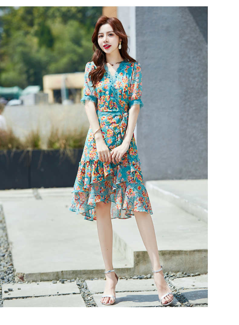 | 商品名称 | 南極人シフォンワンピス女性2021夏新着商品設計感小柄な小柄な韓国版ファッションは腰に結んで小さい大衆の花のスカートNRA 41-2309-ピンクL提案100-110斤を持ちます。 |