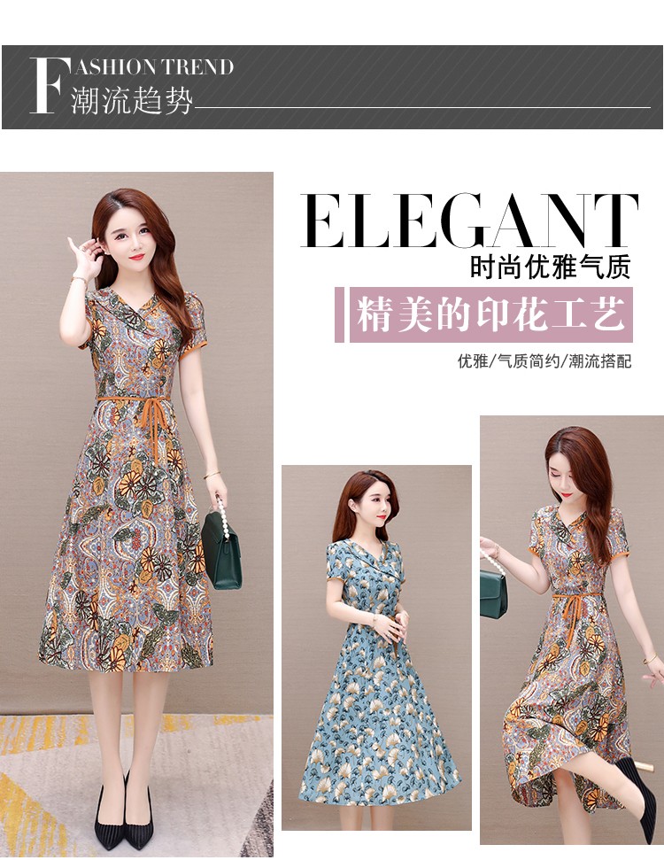 戈蕾妍ワンピスシフォンは21年夏に新商品の韓国版プリントの気質を持っています。中年のお母さんは腰が細く見えるようにしています。中に長いVネックの小花洋風のワンピースブルー(9107)L(90-105斤を推奨します。)