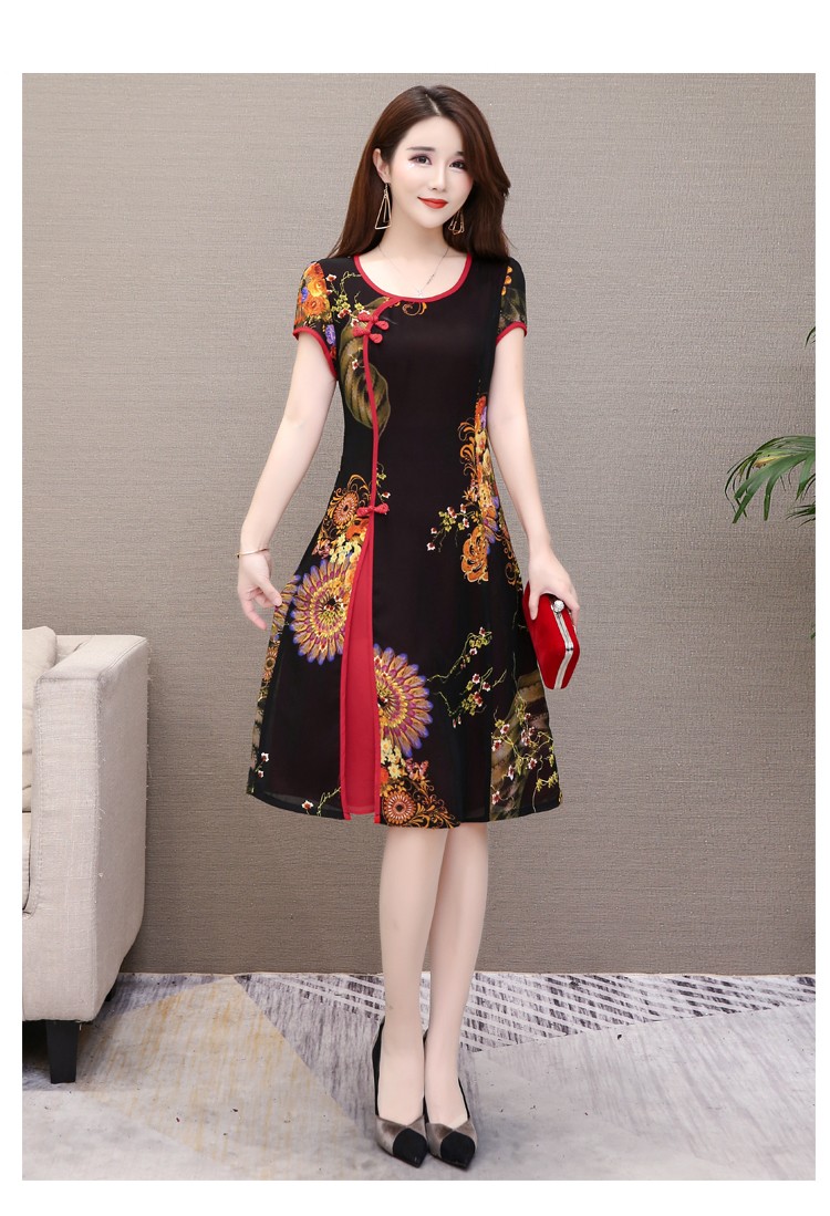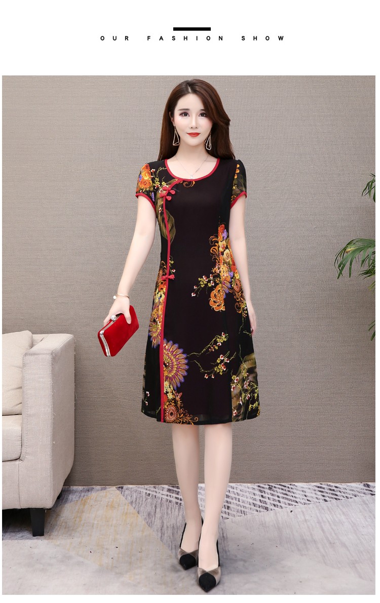 紹介見知らぬ人ワンピス21年夏服新品韓国版シフォンシャツ民族風ビッグサイズの婦人服中年モデルの母は気高い雰囲気を装っています。痩せたプリントの中の長い花はチャイナドレスのスカートの緑色を改良しています。