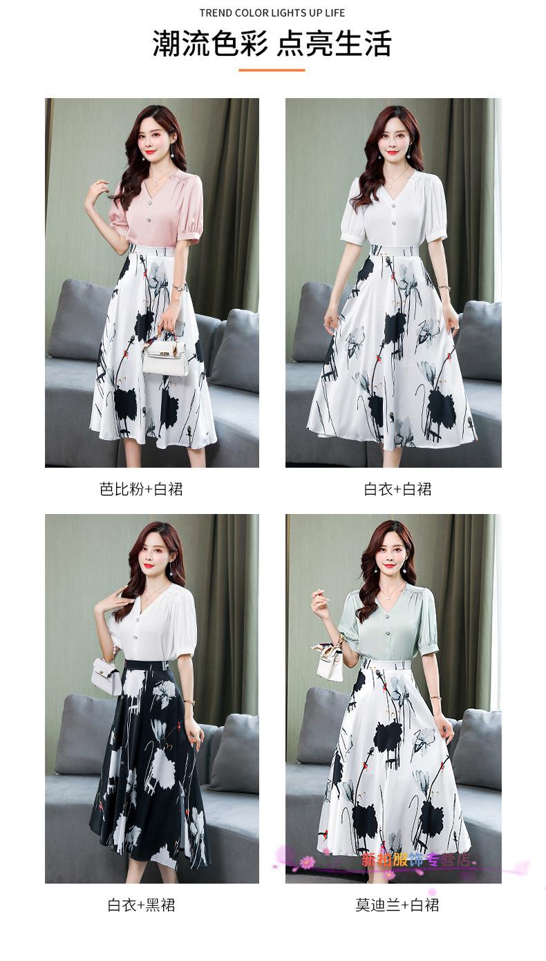 | 商品名称 | MUSSHEオリジナル軽装女装プリント半袖ワンピス女子セイント2021年新商品気質の女神范高腰顕やせ上半身白衣+白スカートL |