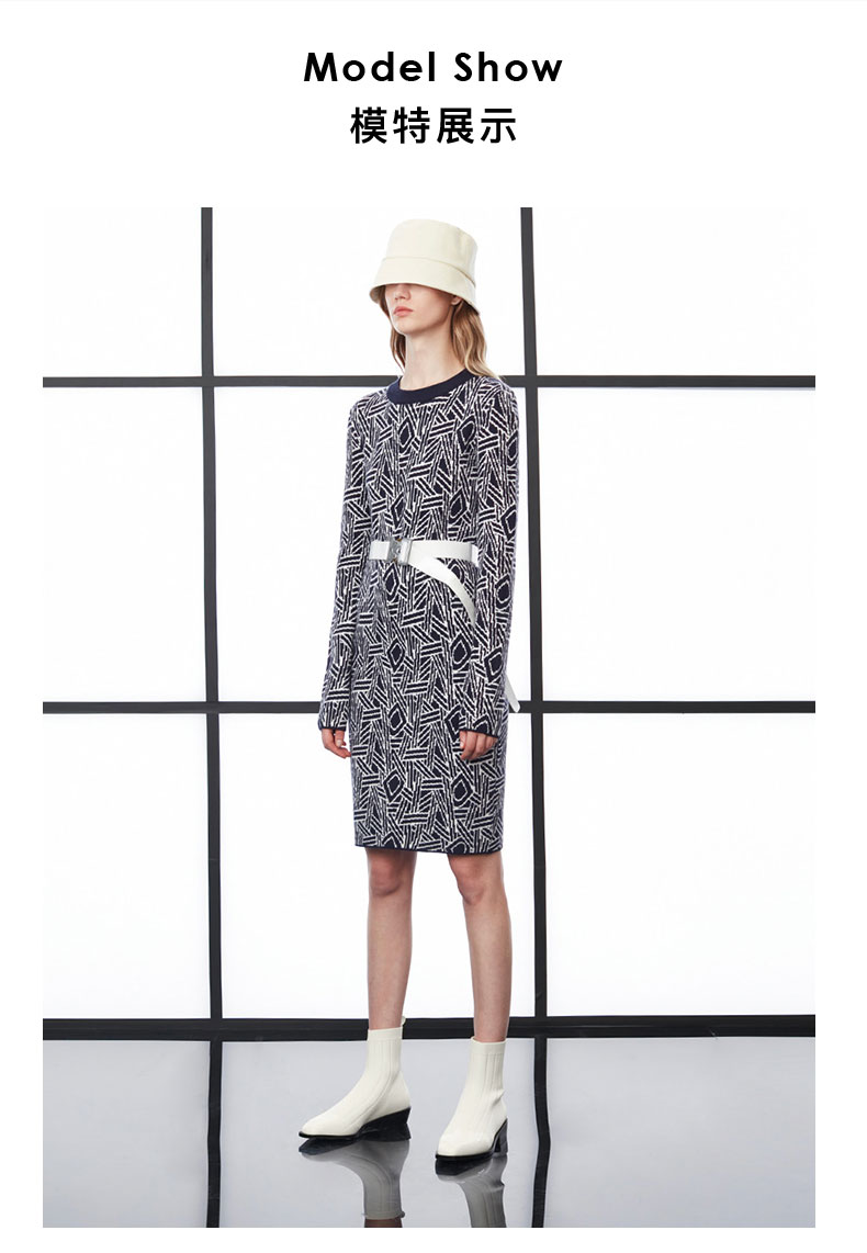 DKNY2021秋冬新着商品圆领長袖撞色LOGO提花弹力修身显瘦针织ワンピース 藏青色 160/84A/M