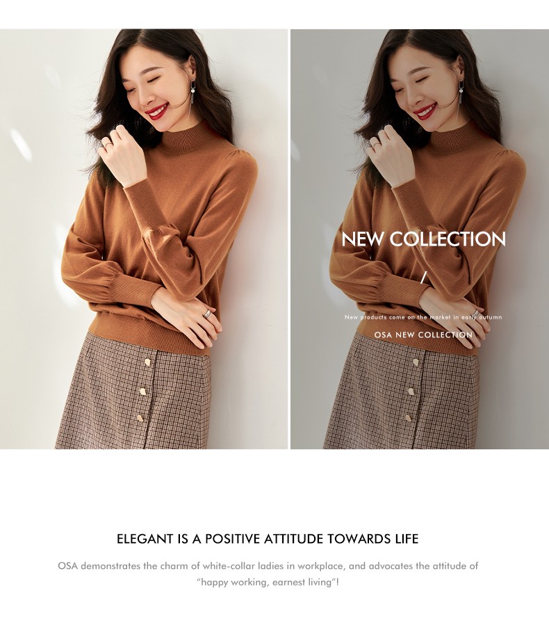 | 商品名称 | 【2021冬新品】OSAオーサ半高襟ランタン袖ソールニットトップス秋冬2021年新着商品内セーター気質雅ブラウンXL |